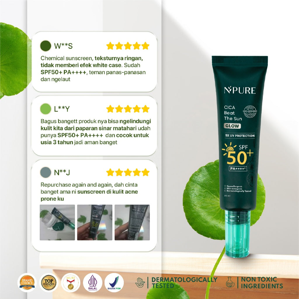 2PCS TWIN PACK SUNSCREEN - NPURE Sunscreen Cica Beat The Sun Glow / Sunscreen Hypoallergenic / SPF 50 PA ++++ / Kulit Kering Jerawat Facial Extract Hitam Vitamin Bruntusan Wajah