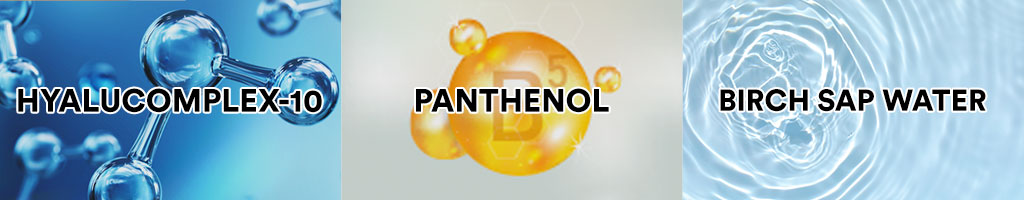 - HyaluComplex-10: kombinasi dari 10 jenis molekul Hyaluron “low to middle weight molecule” yang dapat meningkatkan dan mempertahankan level hidrasi pada lapisan kulit yang berbeda sehingga dapat menjaga kelembapan wajah sepanjang hari