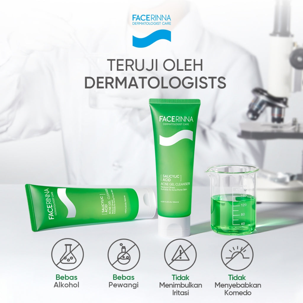 FACERINNA Salicylic Acid Acne Gel Cleanser 70ml / 120ml | Gentle Sabun Cuci Muka Menenangkan Jerawat Mengontrol Minyak & Menghilangkan Komedo Oil Control Clean Calming Down Facial Wash Skincare Face Wash Cleansing Balm Pembersih Wajah | Panthenol Gentl