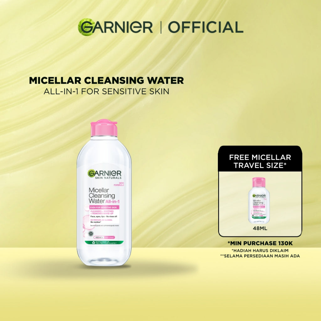 GARNIER Micellar Water Pink Skin Care 400ml Skincare Cleansing - Pembersih Wajah & Make up untuk Kulit Sensitif Micellar Cleansing Water