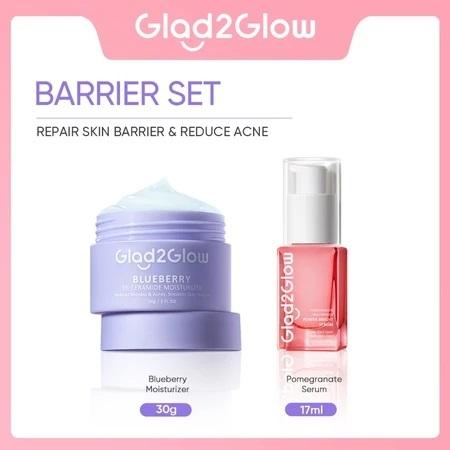 Glad2Glow 2pcs Skincare Bundle - Barrier Bright Blueberry Ceramide Centella Serum & Moisturizer Gel for Glowy Skin Care