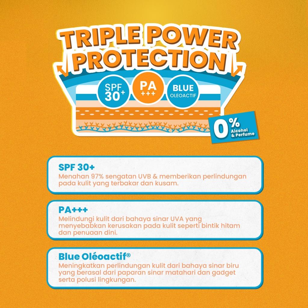PA+++: Protects skin from the dangers of UVA rays that cause skin damage such as dark spots and premature aging