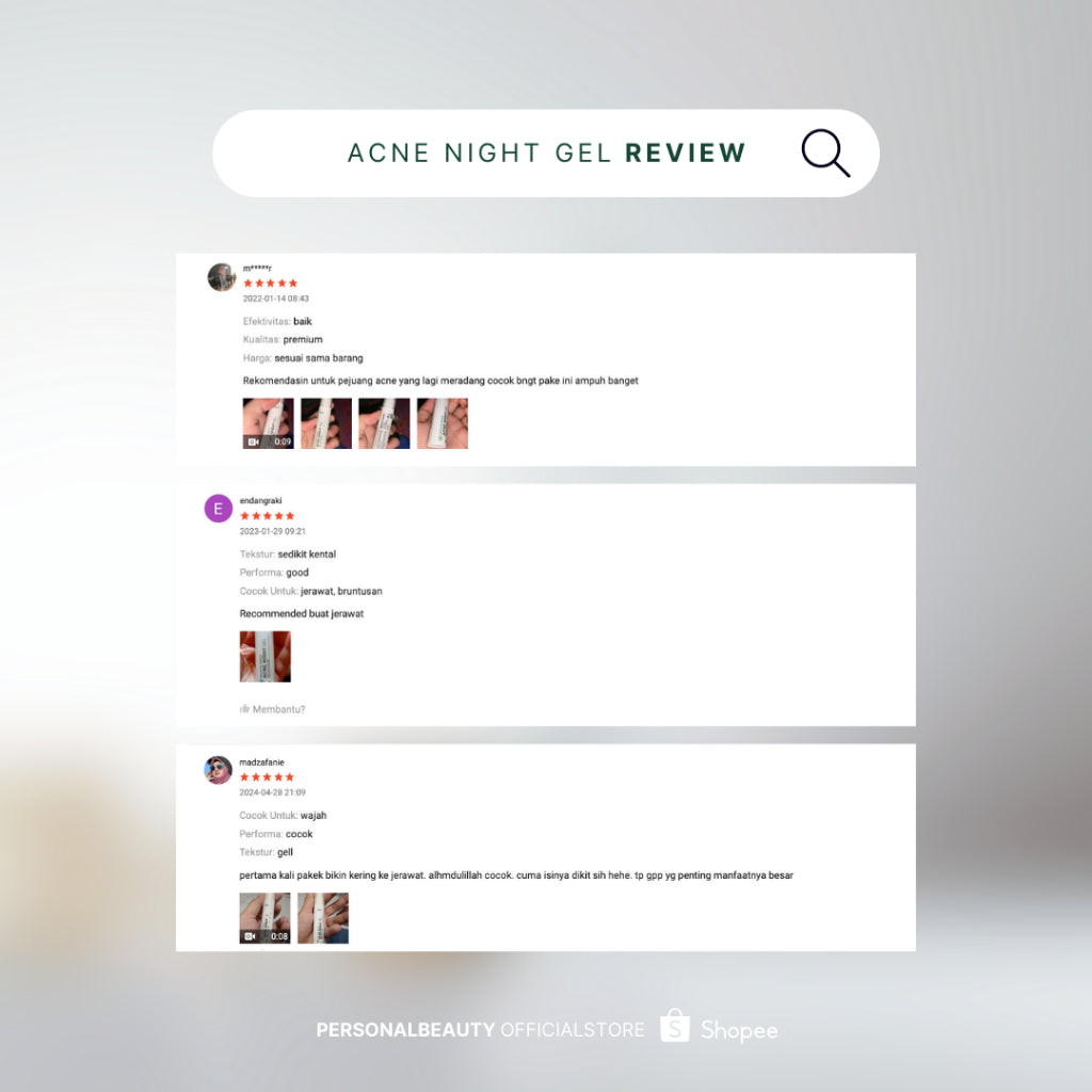 Personal Beauty Acne Night Gel Terapi Peradangan Jerawat Sebum Control Anti Bacterial Exfoliating Moisturizer