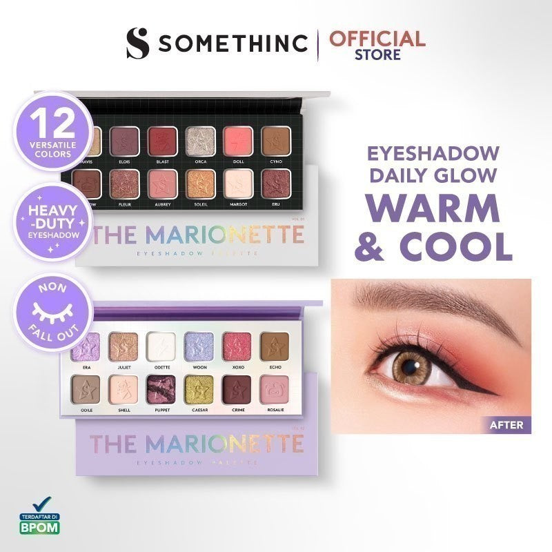 Tunjukkan personality-mu dengan 12 eyeshadow ultra-pigmented yang super halus. Somethinc The Marionette Eyeshadow Palette terdiri dari dual-chrome glitter, shimmer & matte shades untuk riasan mata yang mempesona. Dapatkan hasil yang pop out dalam 1x swipe tanpa fallout!