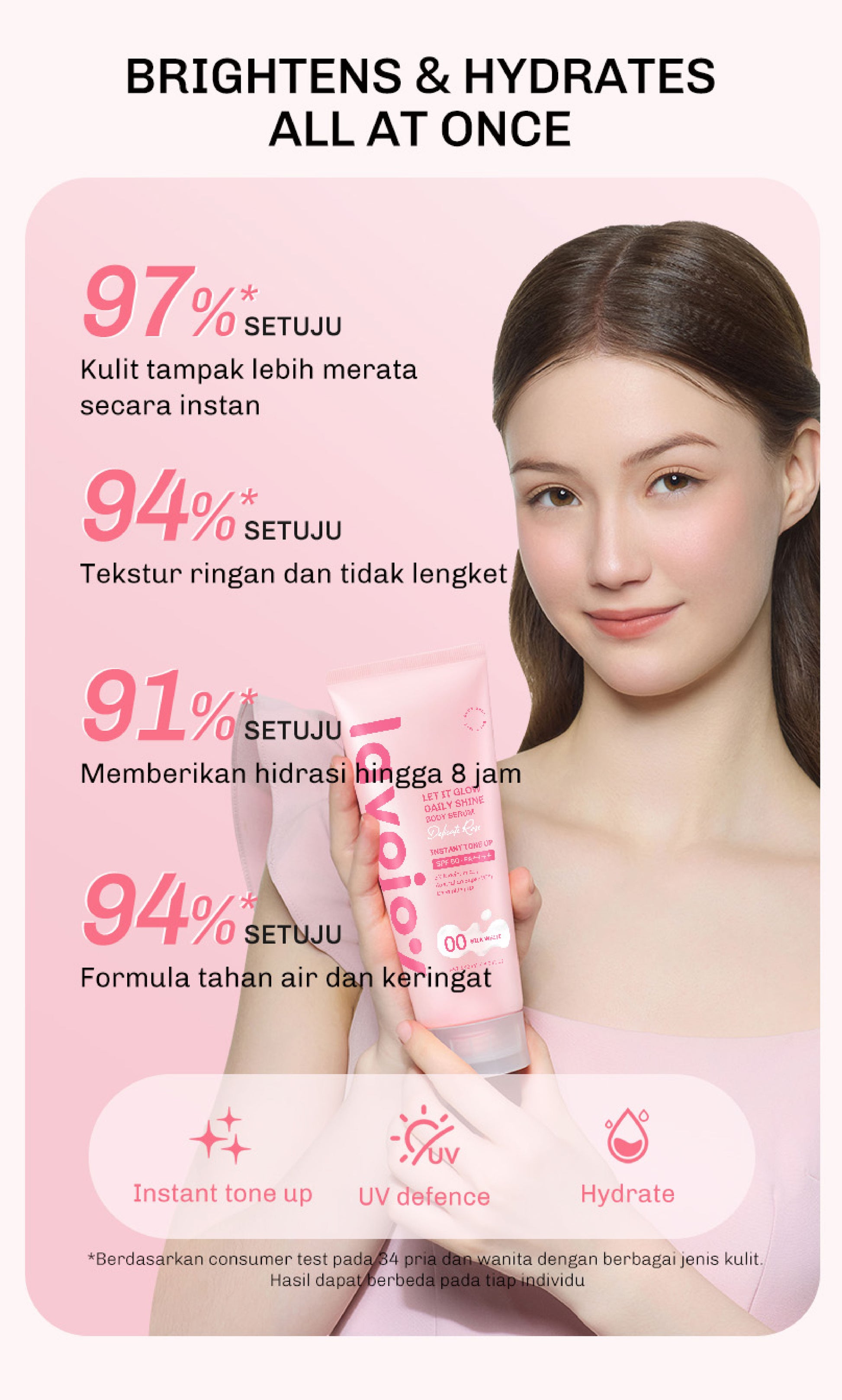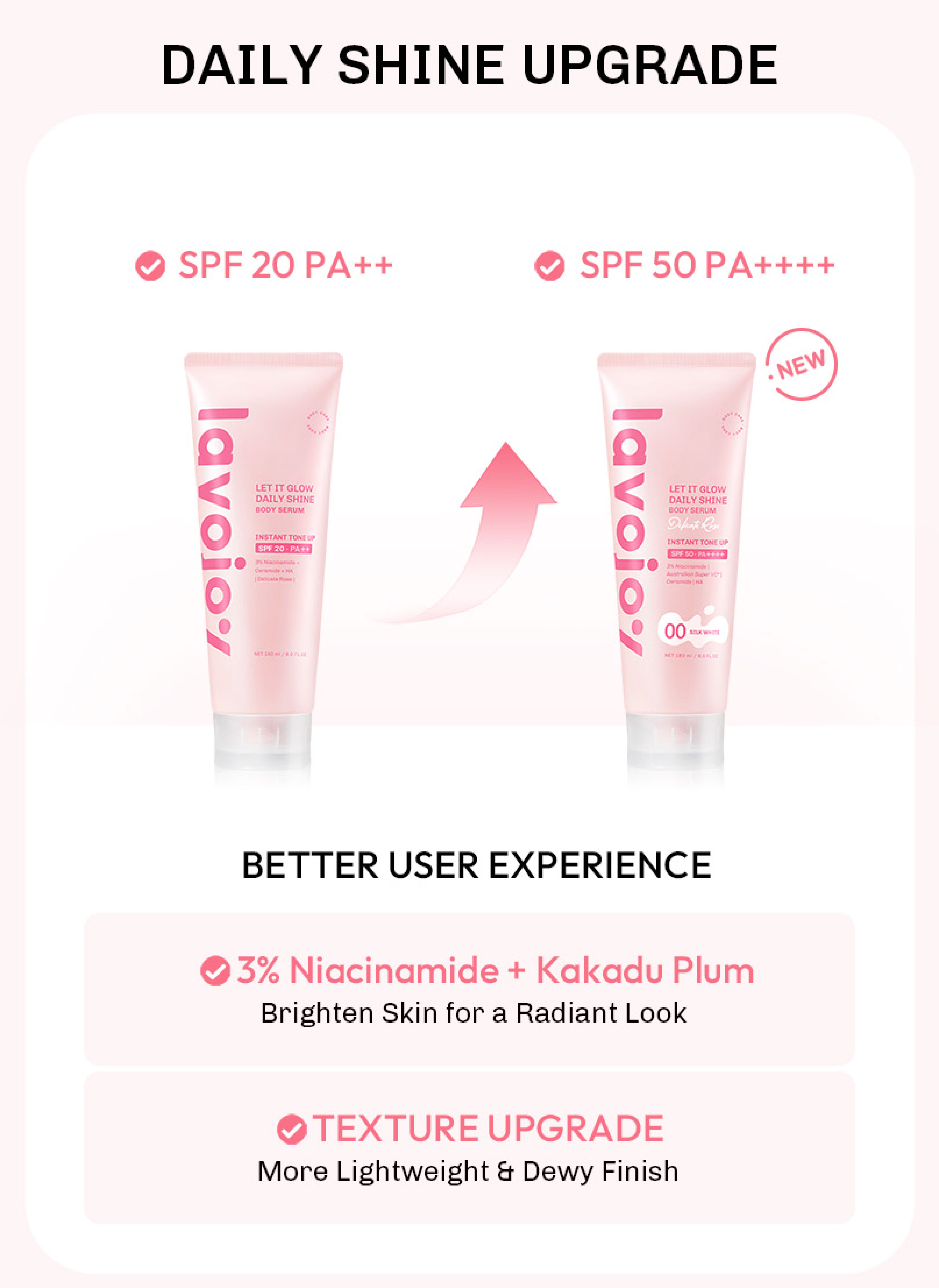 [TONE UP TWINPACK] Lavojoy Let It Glow Daily Shine Body Serum Instant Tone Up Delicate Rose with SPF 50PA++++ | Body Serum untuk Perlindungan Sinar UV | Mencerahkan Seketika & Melembapkan Kulit dengan 3% Niacinamide + Australian Super VC + Ceramide + HA