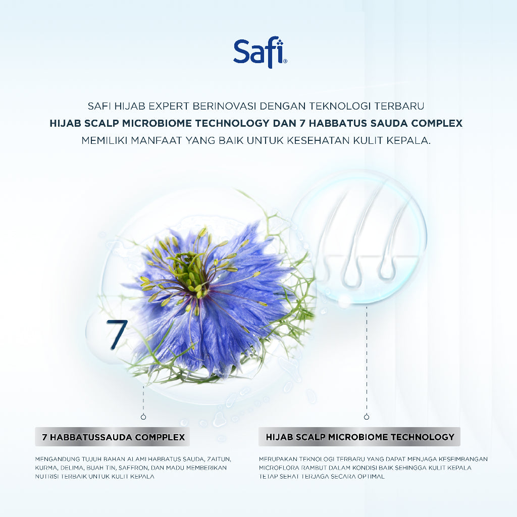 SAFI Hijab Xpert Fresh and Bounce Shampoo, diformulasikan dengan Nano Lipid Enhancer untuk memperkuat struktur rambut diperkaya dengan Habbatus Sauda yang melembabkandan melindungi rambut terasa lebih kuat di akhir hari bahkan setelah melepas Hijab Anda.