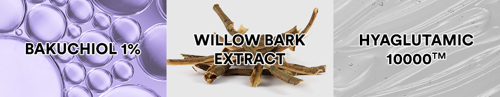 - Bakuchiol 1%: sebagai alternatif Retinol yang dapat meremajakan kulit dan menyamarkan tanda penuaan