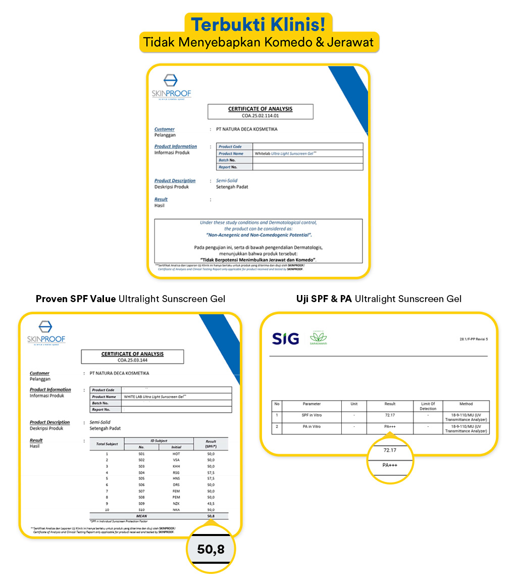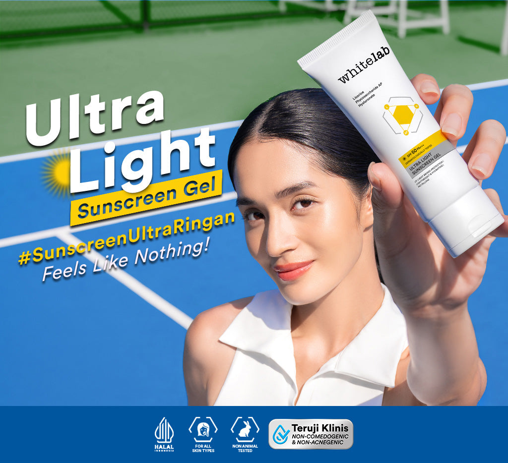 Sunscreen ultra-ringan, feels like nothing! Teruji klinis non-acnegenic & non-comedogenic. Tidak menyebabkan whitecast (kulit abu-abu atau putih luntur) dan tidak pilling