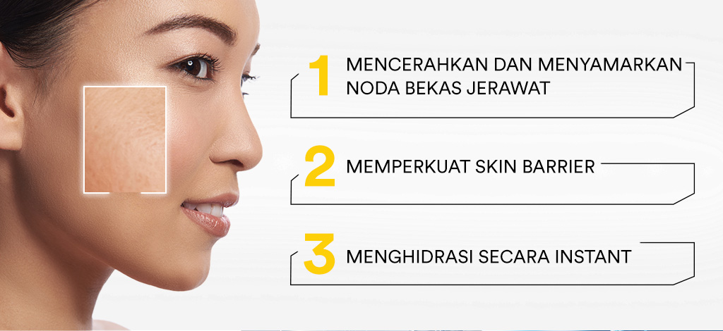- Mencerahkan dan menyamarkan noda bekas jerawat