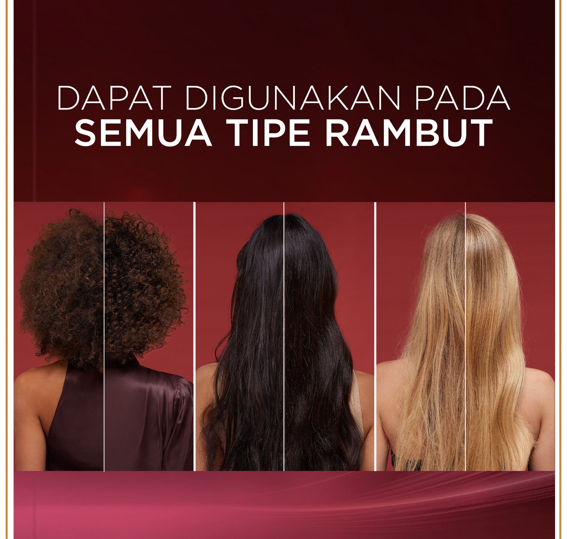 *Studi klinis pada 99 subjek, aplikasi harian selama 6 minggu. **Uji instrumental. Setelah menggunakan sampo + masker + serum