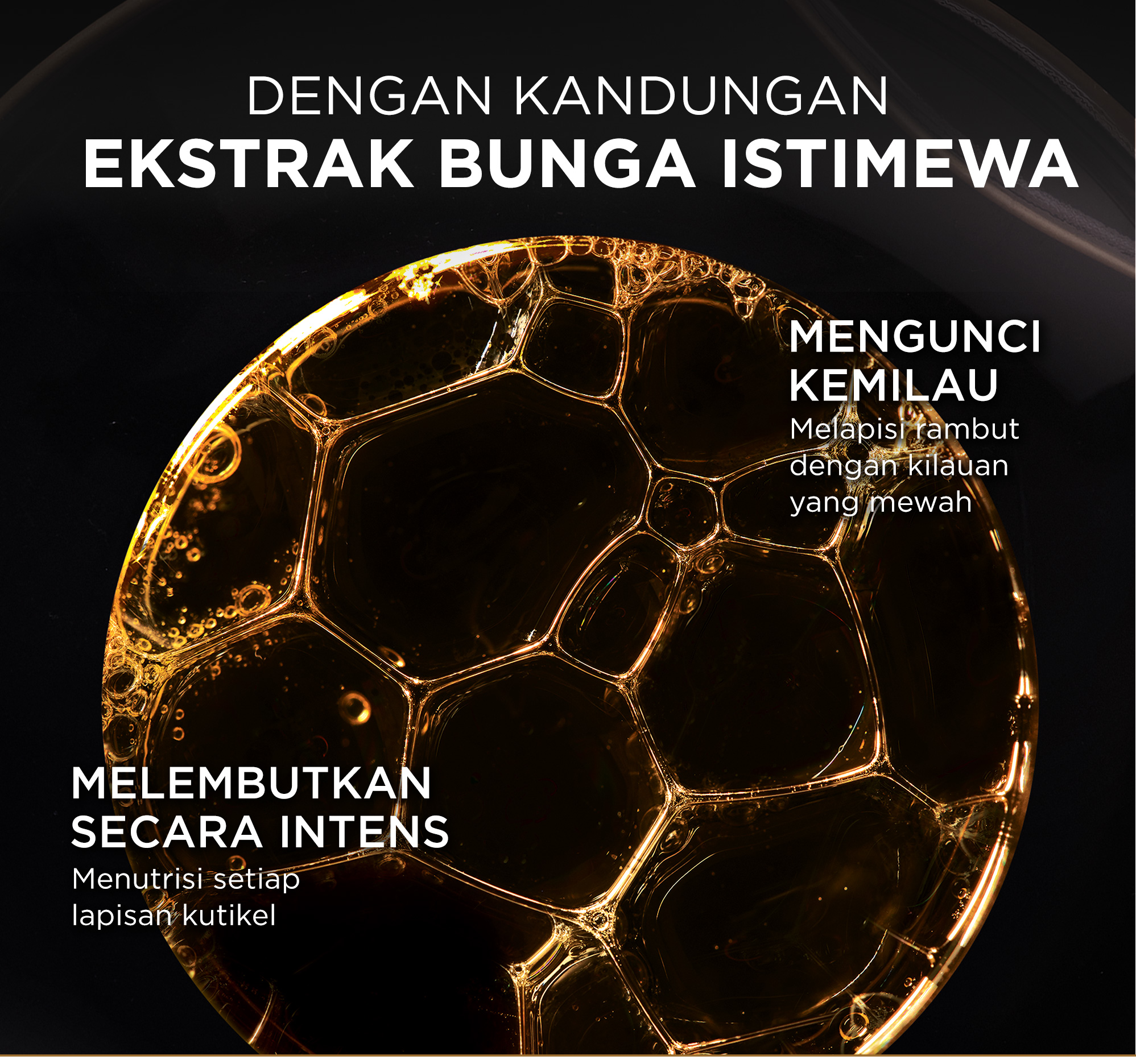 • Menggunakan formula yang diperkaya dengan 6 minyak bunga istimewa, teresap hingga ke dalam batang rambut, merawat kelembaban sampai inti rambut dan memberikan kilau yang sehat untuk rambut cantikmu.