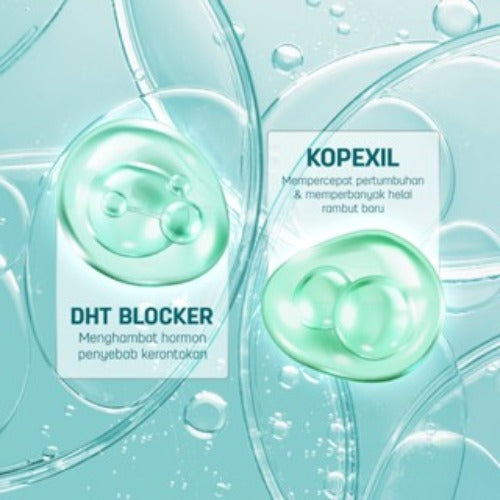 - Mengandung Kopexil™ dan Ekstrak Panax Ginseng yang membantu mengurangi kerontokan rambut serta memperkuat akar rambut.