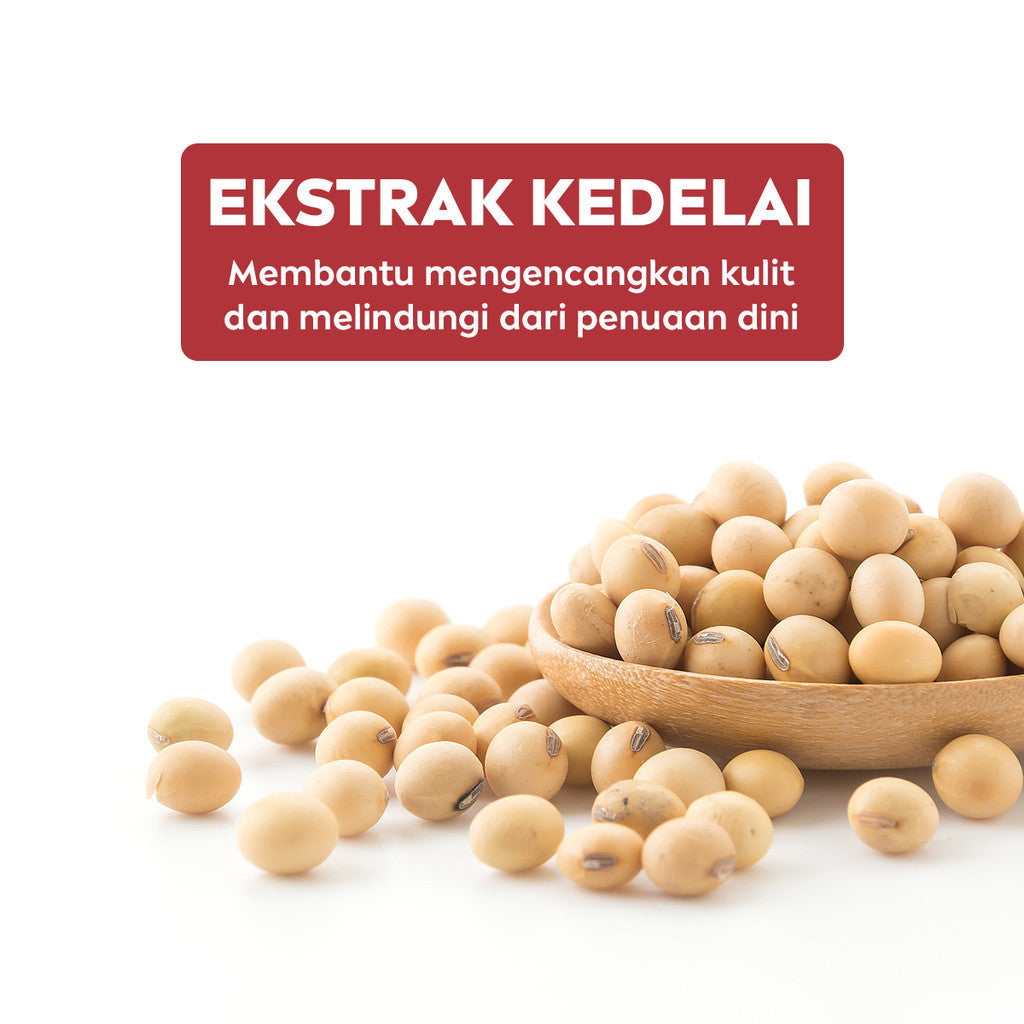- Ekstrak Kedelai, Membantu mengkencangkann kulit dan melindungi dari penuaan dini