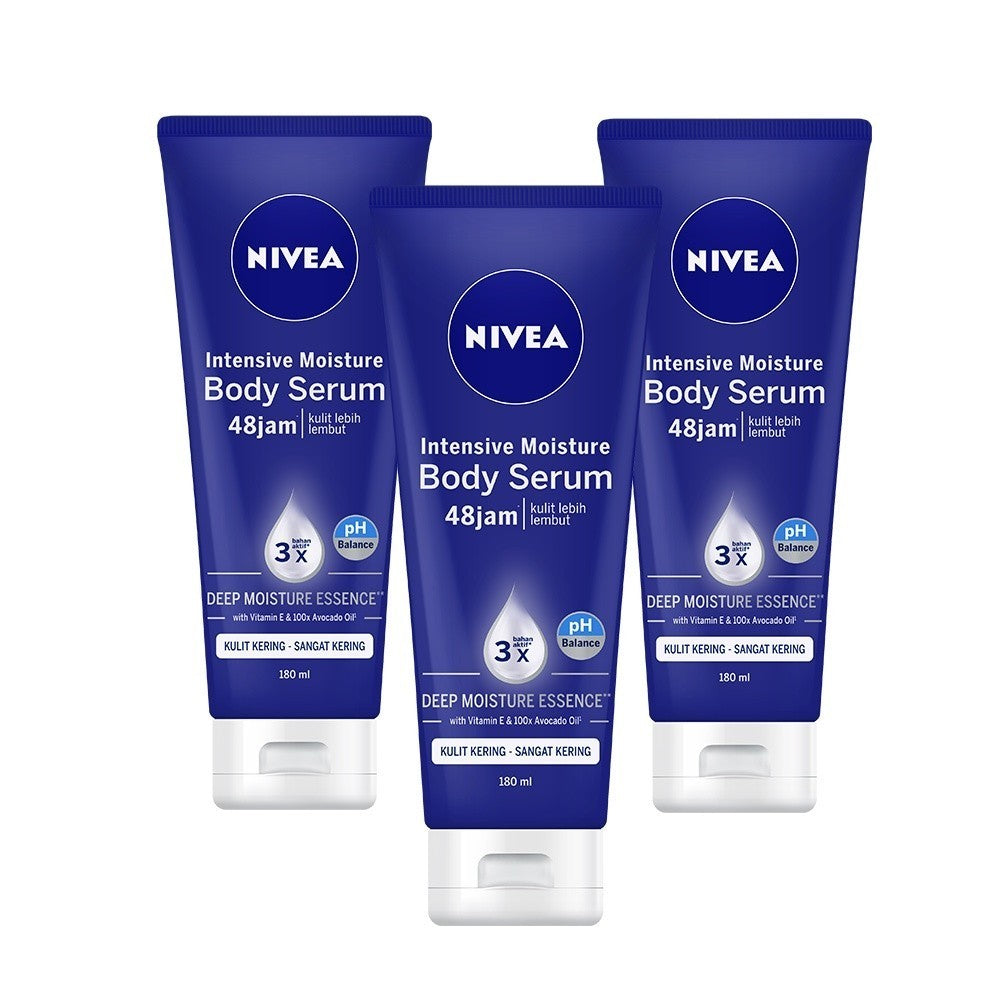 (PAKET HEMAT ISI 3) NIVEA Body Serum Intensive Moisture 180ml - Hand body serum lotion mositurizer 48 jam body care kulit kering kasar bersisik pecah-pecah memperbaiki skin barrier pelembab kulit lembut - Vitamin E, Grapeseed oil, Avocado oil, Hydra IQ
