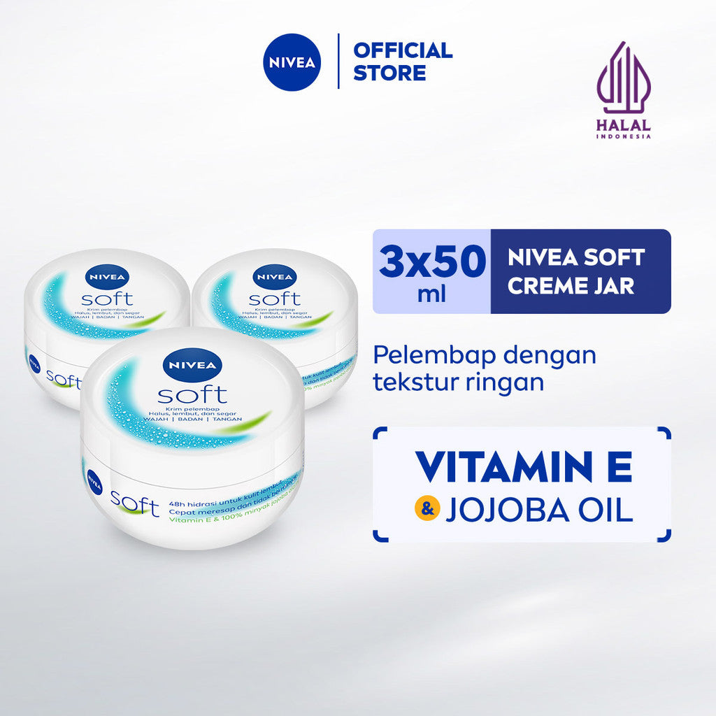 (PAKET HEMAT ISI 3) NIVEA Cream Moisturizer Soft Creme Jar 50ml - Hand body krim cream mositurizer multifungsi jar putih body care kulit kering kasar badan wajah muka sikut tumit memperbaiki skin barrier pelembab kulit - Vitamin E, Jojoba Oil