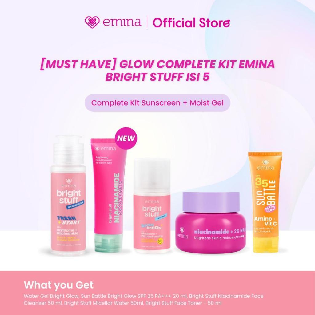 [SPECIAL 11.11] [MUST HAVE] GLOW COMPLETE KIT EMINA BRIGHT STUFF ISI 5 (Micellar Water, Face Wash, Toner, Serum, Moisturizing Cream)