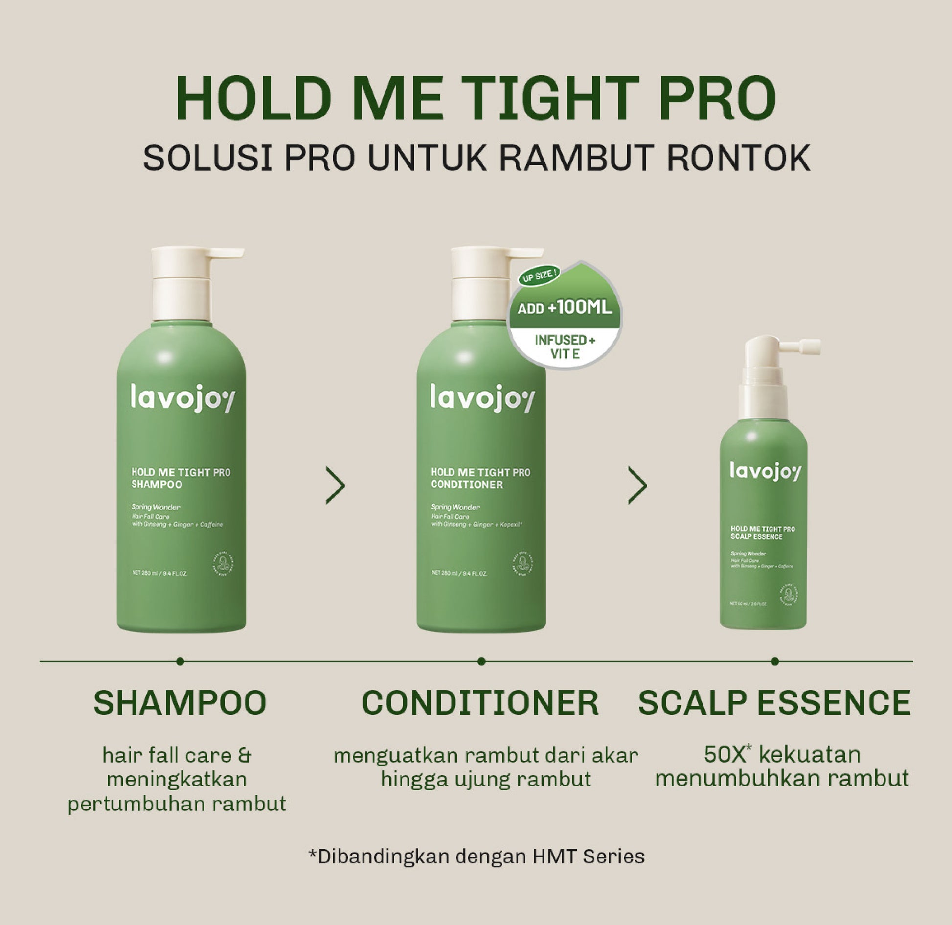 [3IN1 BUNDLE] Lavojoy Hold Me Tight Pro Shampoo + Conditioner + Scalp Essence Spring Wonder | Perawatan Intensif untuk Rambut Rontok | Perawatan Rambut Rontok | Ginseng Ginger Caffeine | Hair Care Growth | Citric Acid
