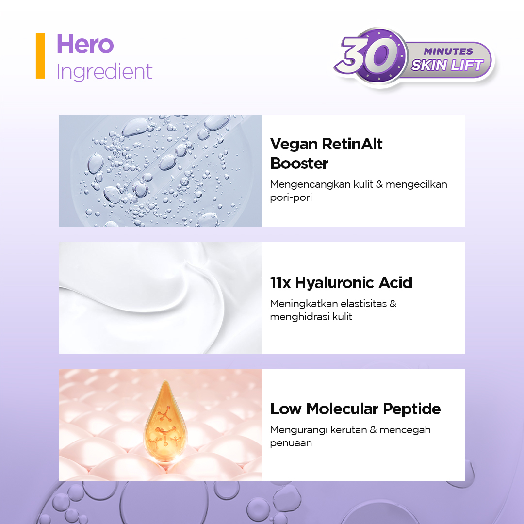 Pelembab pagi dan malam untuk mengurangi kerutan dan garis halus, mengencangkan kulit, dan melembapkan hingga berjam-jam.
