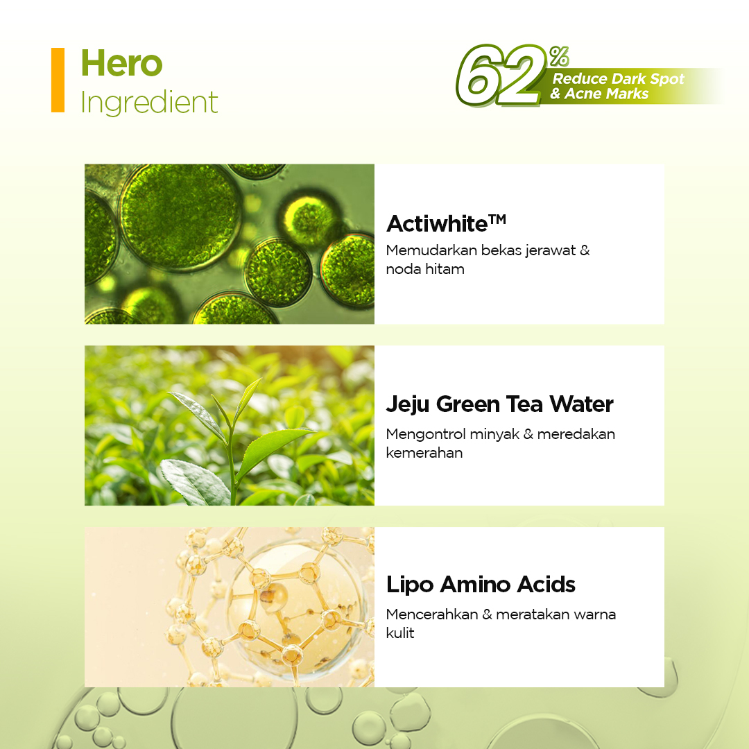 Pelembab pagi dan malam untuk memudarkan bekas jerawat, merapatkan pori-pori, dan mengontrol minyak.