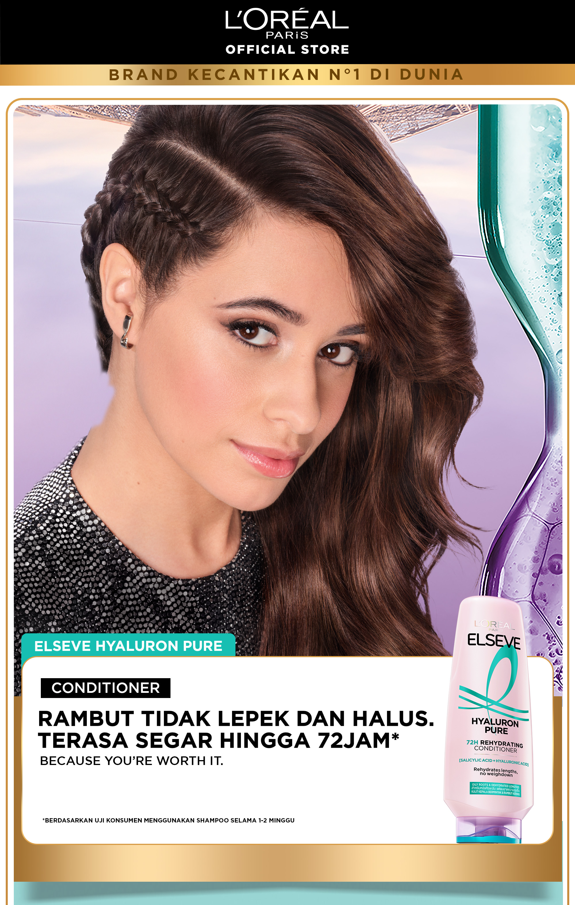 • Innovasi baru dari L’Oreal Paris Elseve! dengan kombinasi 2 Kandungan Skincare yang powerful, bebas lepek dan rambut halus tahan hingga 72 Jam!