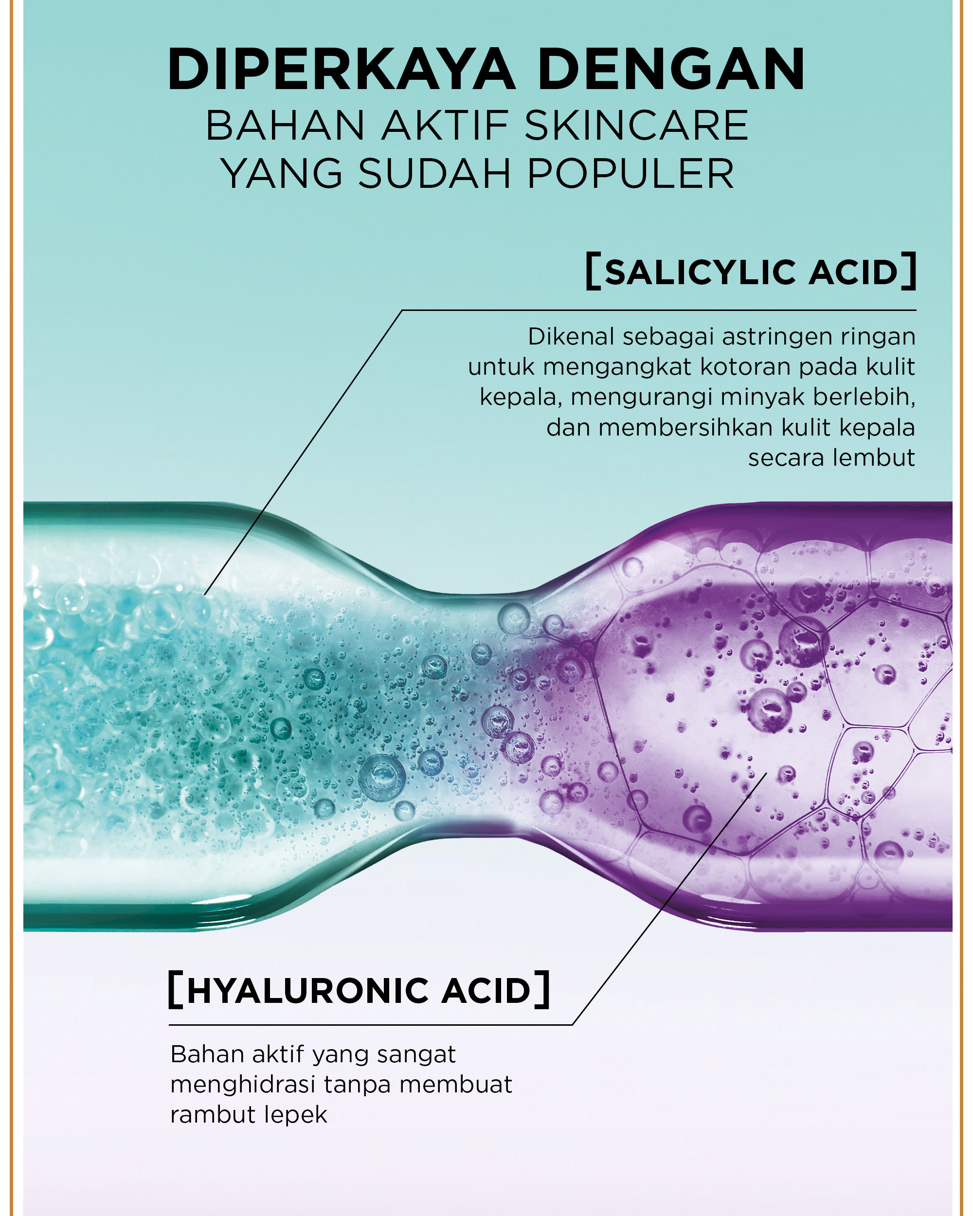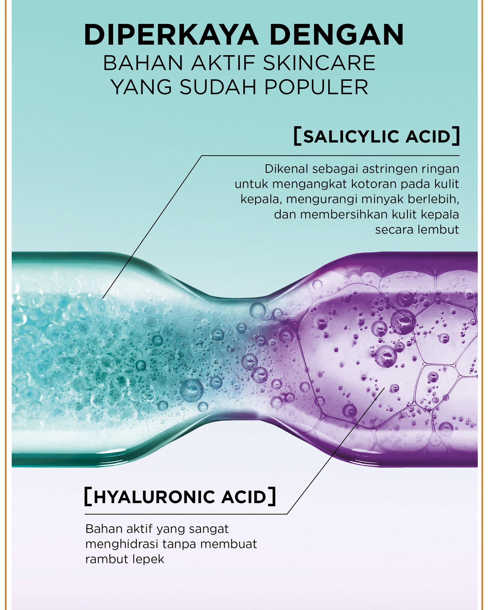 • [Salicylic Acid] – Kurangi produksi minyak berlebih untuk mengatasi kulit kepala yang berminyak dan mudah lepek.