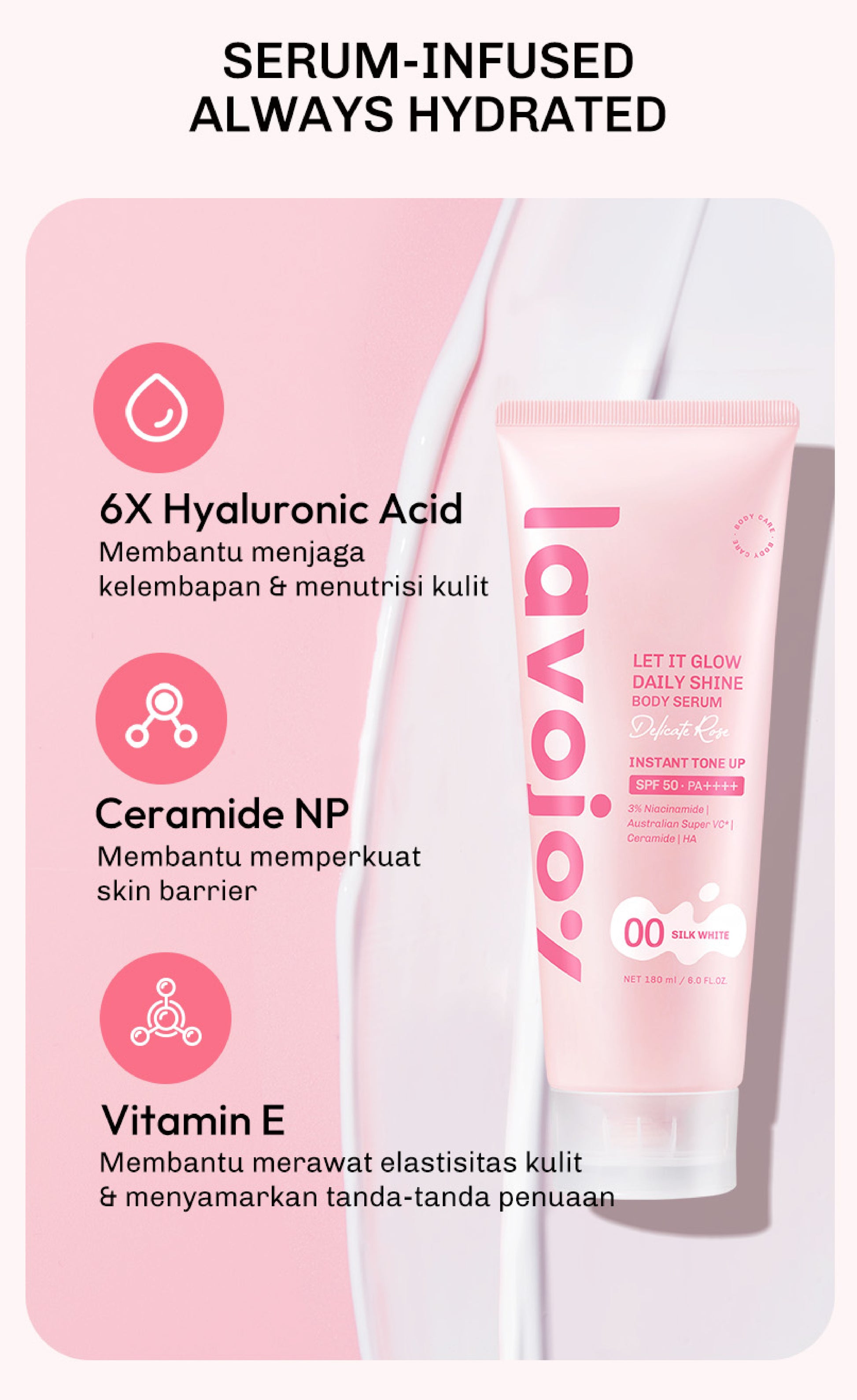 lavojoy Let It Glow Daily Shine Body Serum Instant Tone Up Delicate Rose SPF 50 PA++++ 180ml (x1pcs) :