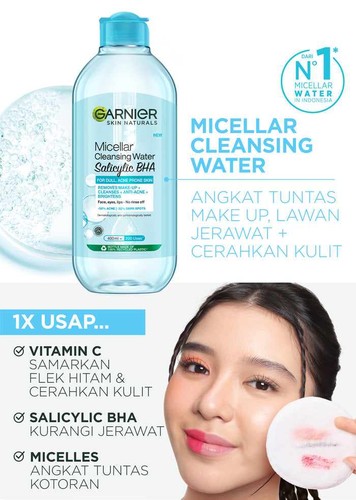 • Dapatkan kulit bersih tanpa takut jerawat dengan Garnier Micellar Salicylic BHA!