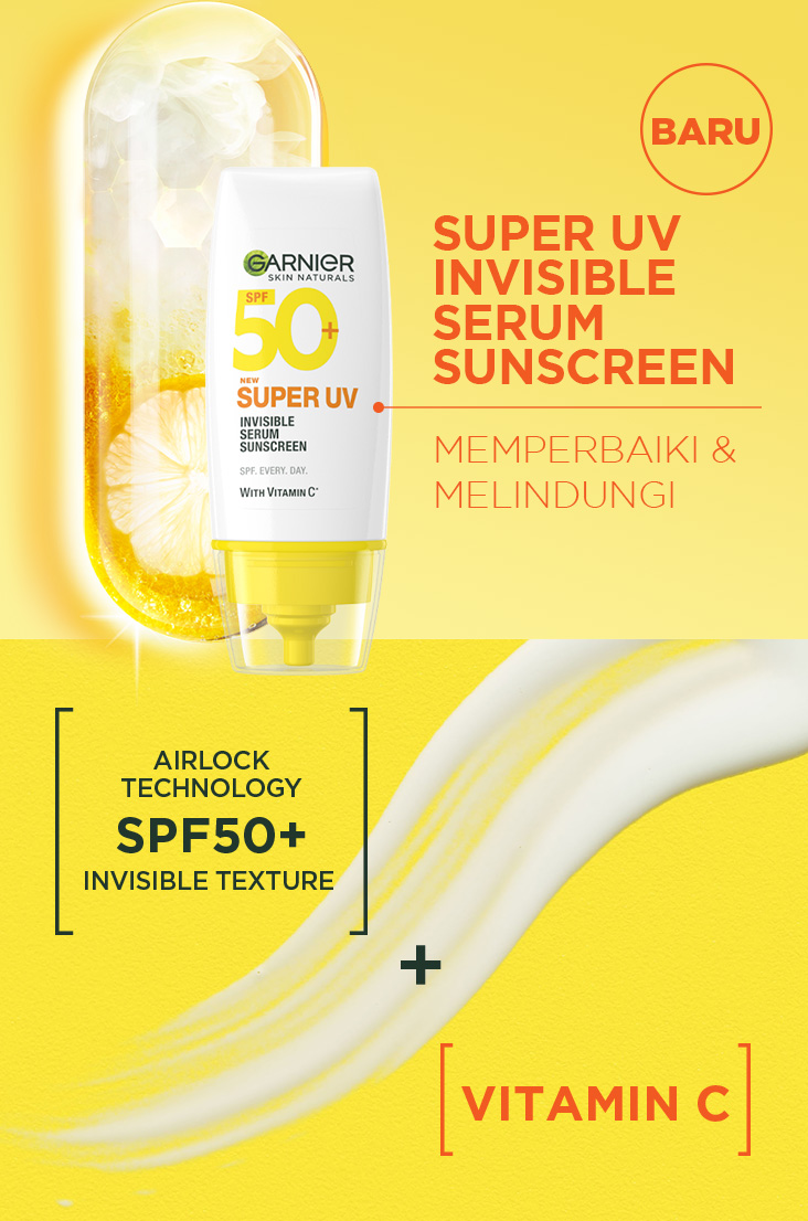 BARU! Garnier Super UV Invisible Serum Sunscreen SPF 50+ PA++++ dengan Vitamin C*