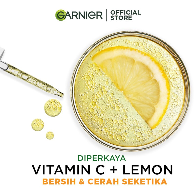 Garnier Micellar Cleansing Water Vitamin C adalah pembersih wajah (cleanser) dengan kandungan vitamin C untuk menghapus makeup, membersihkan wajah, dan mencerahkan wajah kusam. Cocok untuk kulit kusam, bahkan kulit sensitif. Formulanya menyegarkan tanpa rasa berminyak & tidak lengket. Tanpa penambahan alkohol dan pewangi. Micellar water (cleanser) dari Garnier dengan vitamin C yang mampu mengangkat make up dan kotoran agar wajah cerah, bebas kusam dalam sekali usap.