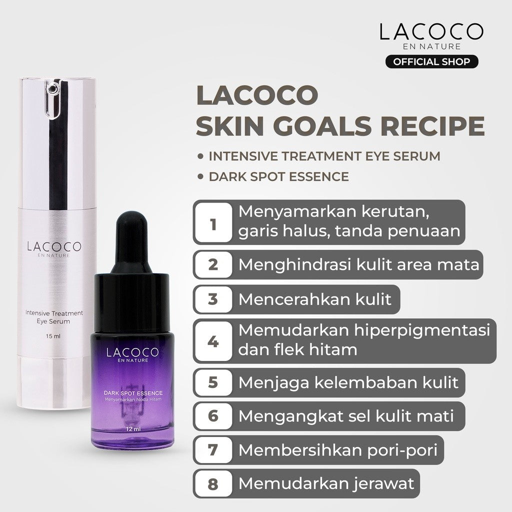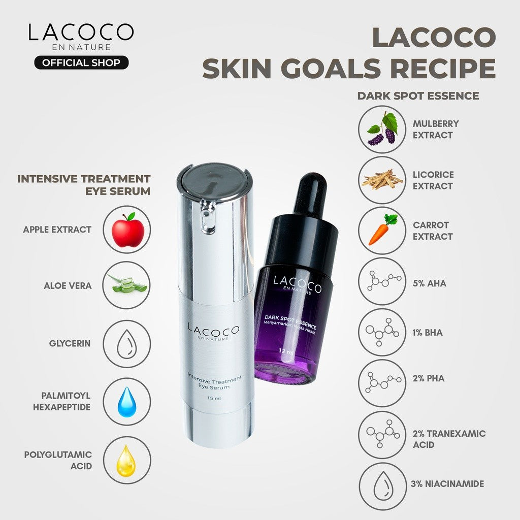 Lacoco Skin Goals Recipe (Dark Spot Essence + Intensive Treatment Eye Serum) - Set untuk Eksfoliasi wajah dan Mengurangi Kantung Mata