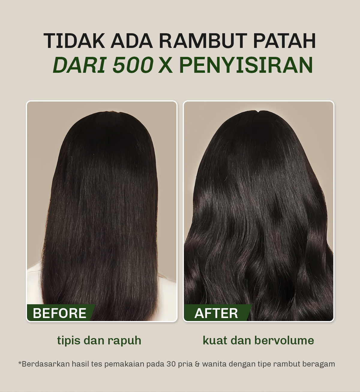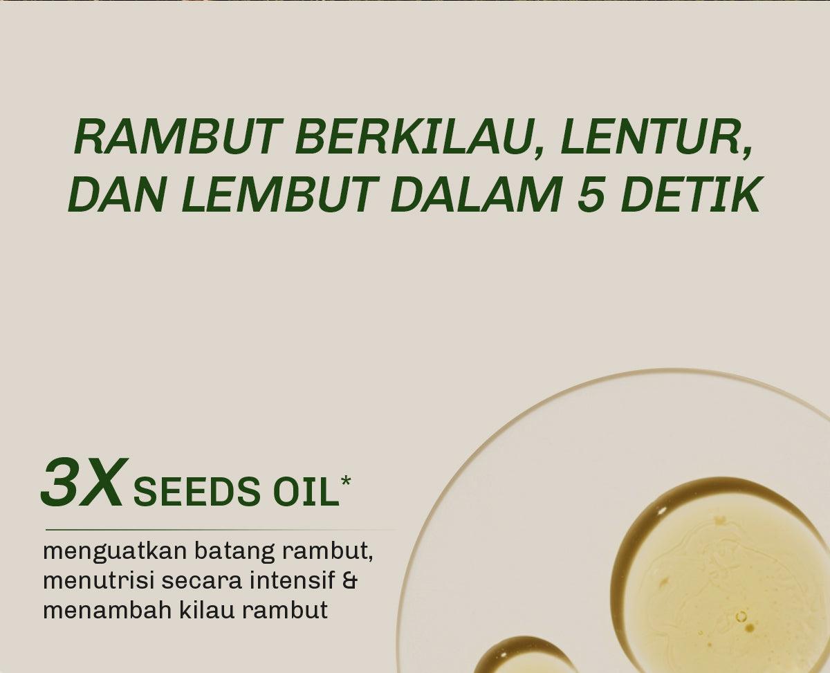 Formula tri-oil melembapkan rambut dan membuat rambut halus; menghindari rambut kusut untuk mengurangi kerontokan; memperbaiki kutikula untuk menghasilkan rambut yang berkilau.
