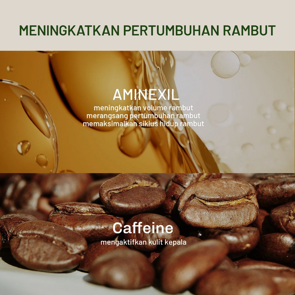 Sampo berbasis Asam Amino dengan formula 0% silikon dan 0% sulfat yang membersihkan dengan lembut. Dikombinasikan dengan ginseng, jahe, kafein dan Kopexil. Membantu mengurangi minyak berlebih, mengurangi kerontokan rambut, memperkuat akar rambut, dan meremajakan folikel rambut.