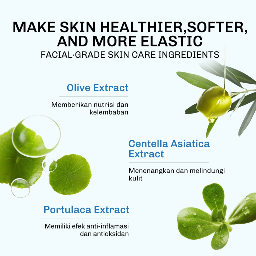 Membantu melembabkan kulit dan memperkuat penghalang kulit yang memberikan efek kulit lembut dan kenyal.