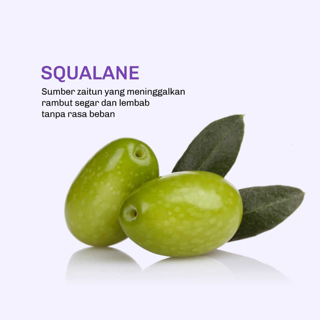 Diperkaya dengan Squalane, Minyak Zaitun, Minyak Biji Bunga Baichi, dan Biji Jojoba yang bekerja secara sinergis untuk membentuk sistem yang menutrisi rambut yang sehat dan alami.