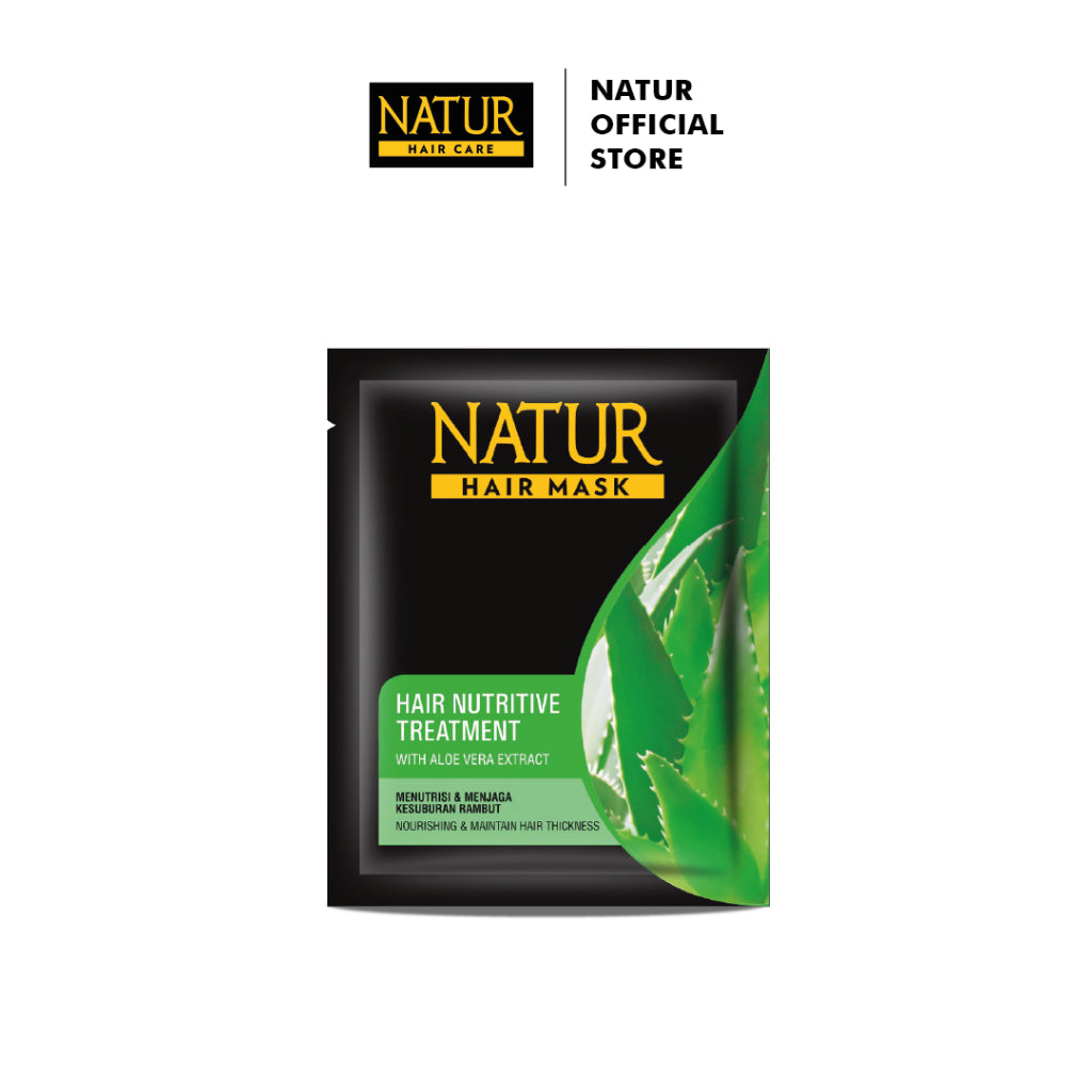 - Setelah keramas, oleskan Natur Hair Mask Hair Nutritive Treatment pada helaian rambut. Digunakan satu kali dalam seminggu atau sesuai kebutuhan rambut anda.