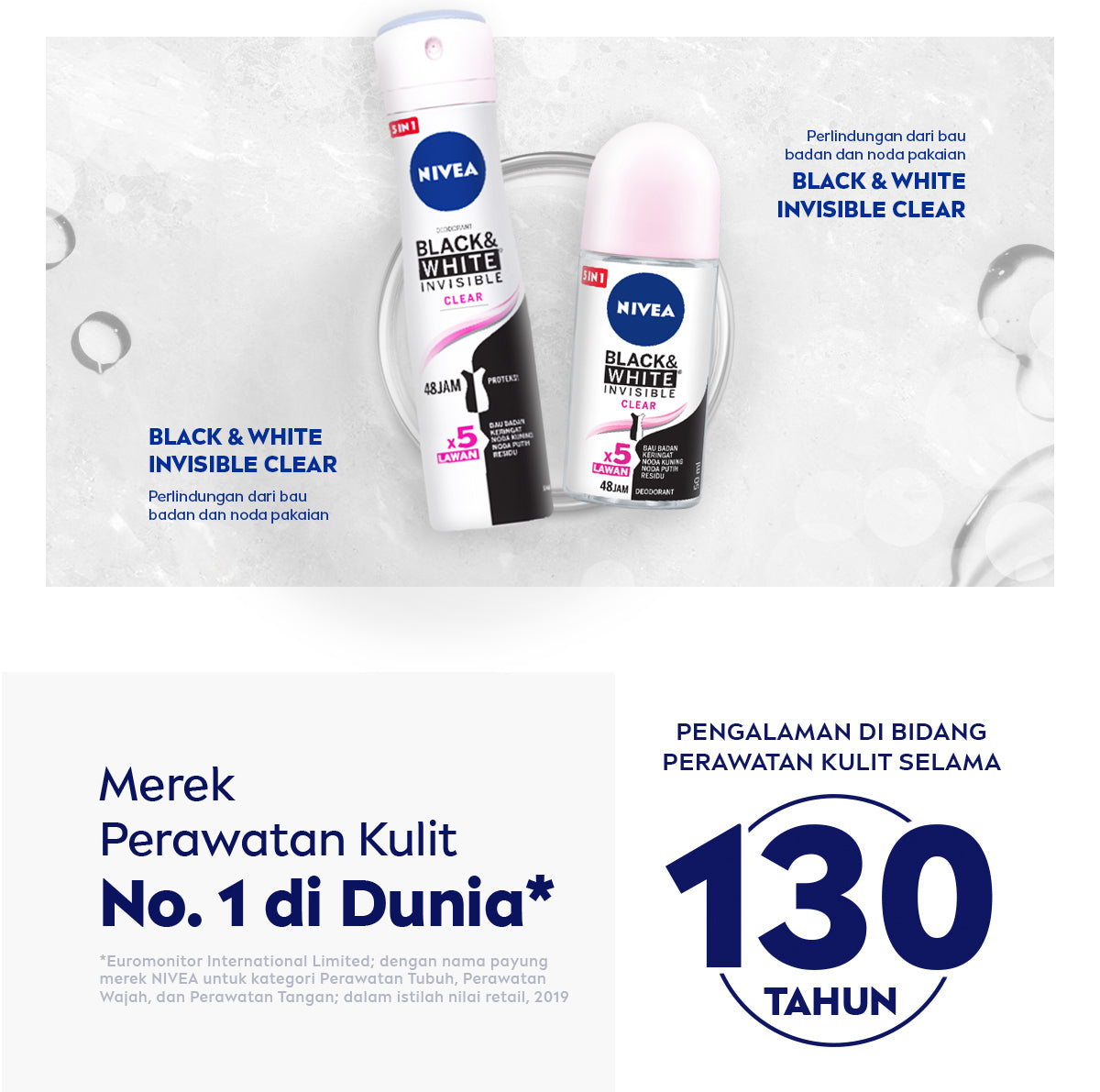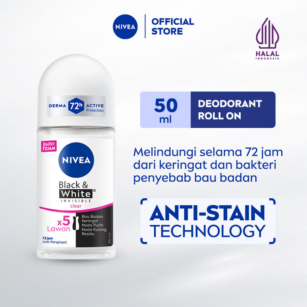 NIVEA Deodorant Roll On Black & White Invisible Original 50ml - Deodoran wanita melawan bau badan tahan keringat anti noda residu dengan wangi segar tahan lama seharian - Antiperspiran, tidak mengandung ethyl alkohol cocok semua jenis kulit