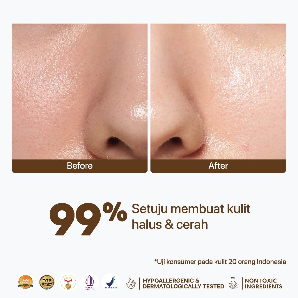 ● Acetyl Glucosamine, menghidrasi kulit, membantu regenerasi kulit, meningkatkan produksi kolagen sehingga kulit lebih kenyal, dan aman untuk kulit sensitif.
