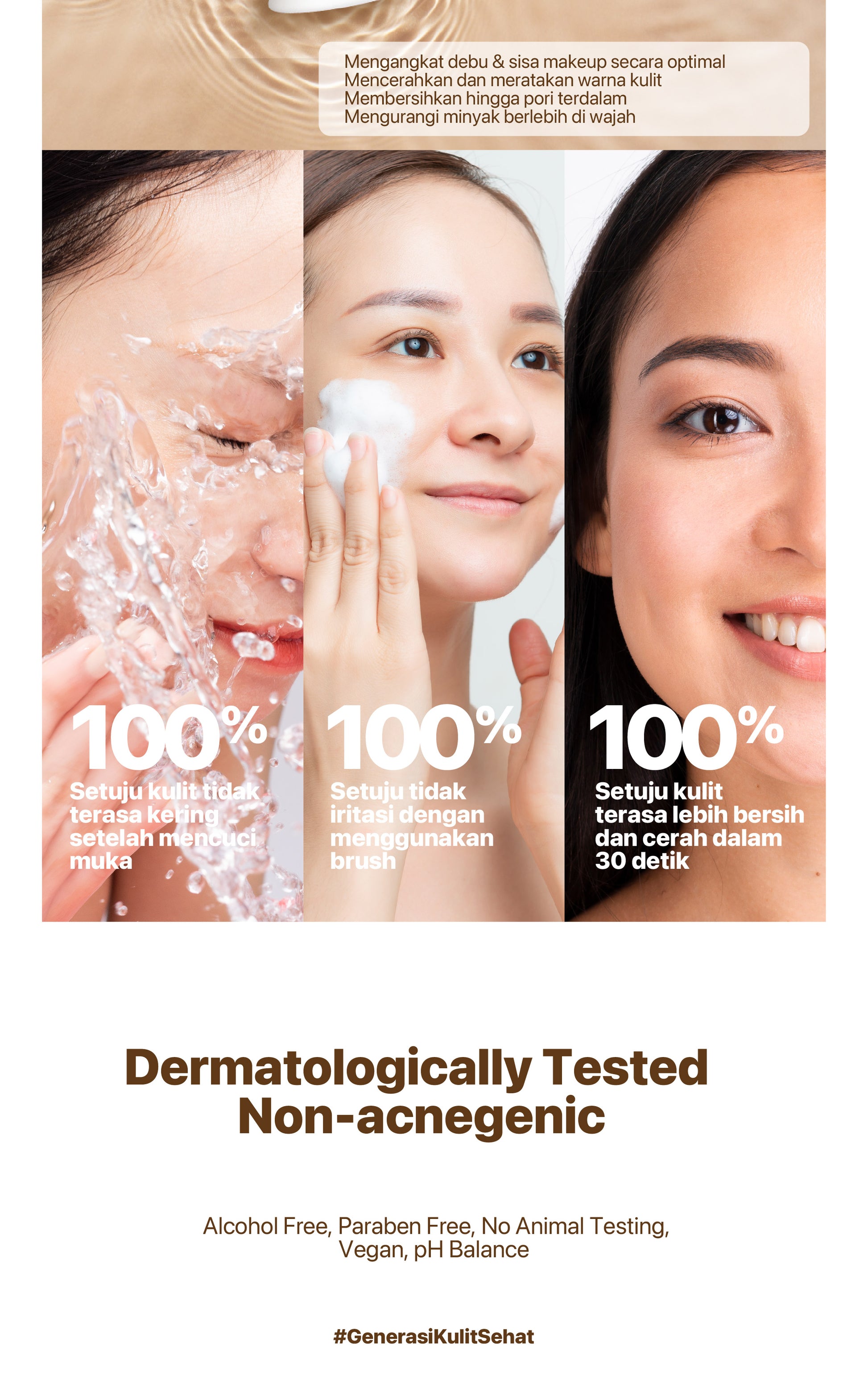 Tuangkan secukupnya pada telapak tangan dan pijat lembut pada kulit wajah yang basah. Bilas dengan air hingga