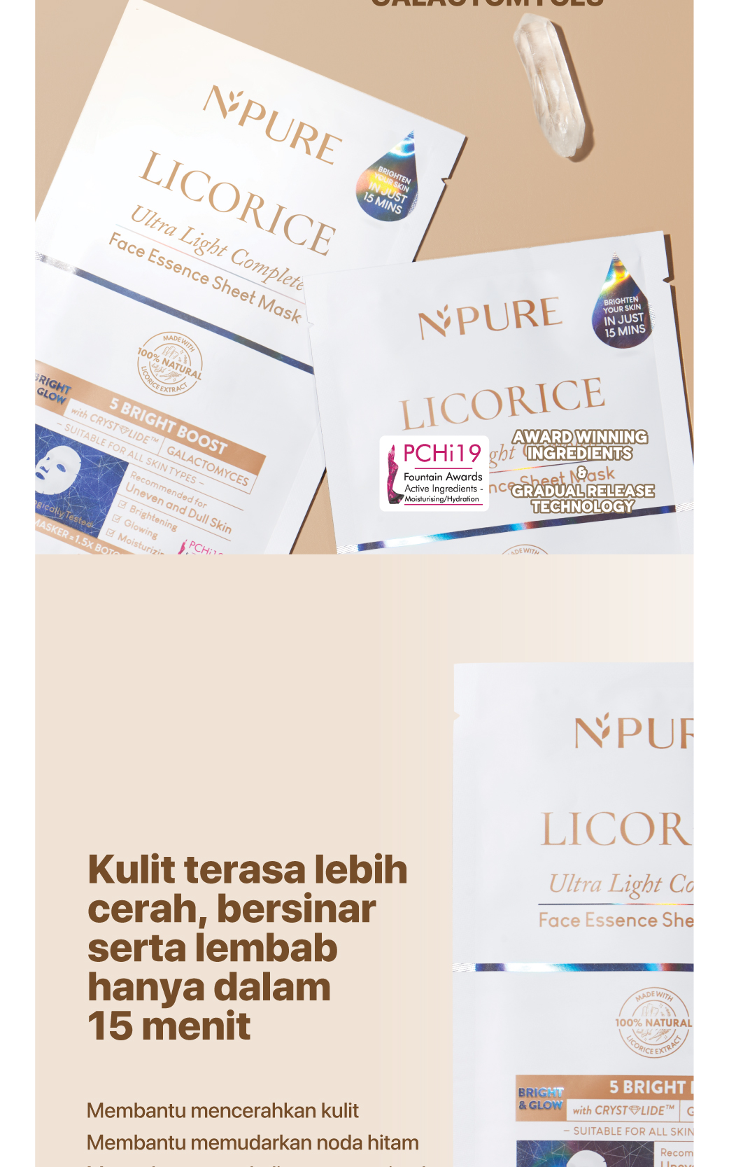NPURE Sheet Mask Licorice / Ultra Light Complete / Brightening Sheet Mask / Masker Wajah Cerah Glowing / 5X Bright Boost