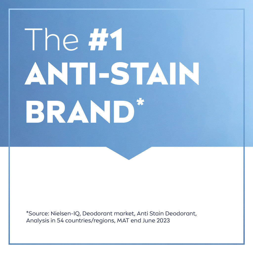 Deodorant dengan formula Anti-Stain Technology untuk 5x lawan bau badan, keringat, noda kuning, noda putih dan residu. Formula nya juga melindungi selama 72 jam dari keringat dan juga melawan bakteri penyebab bau badan.