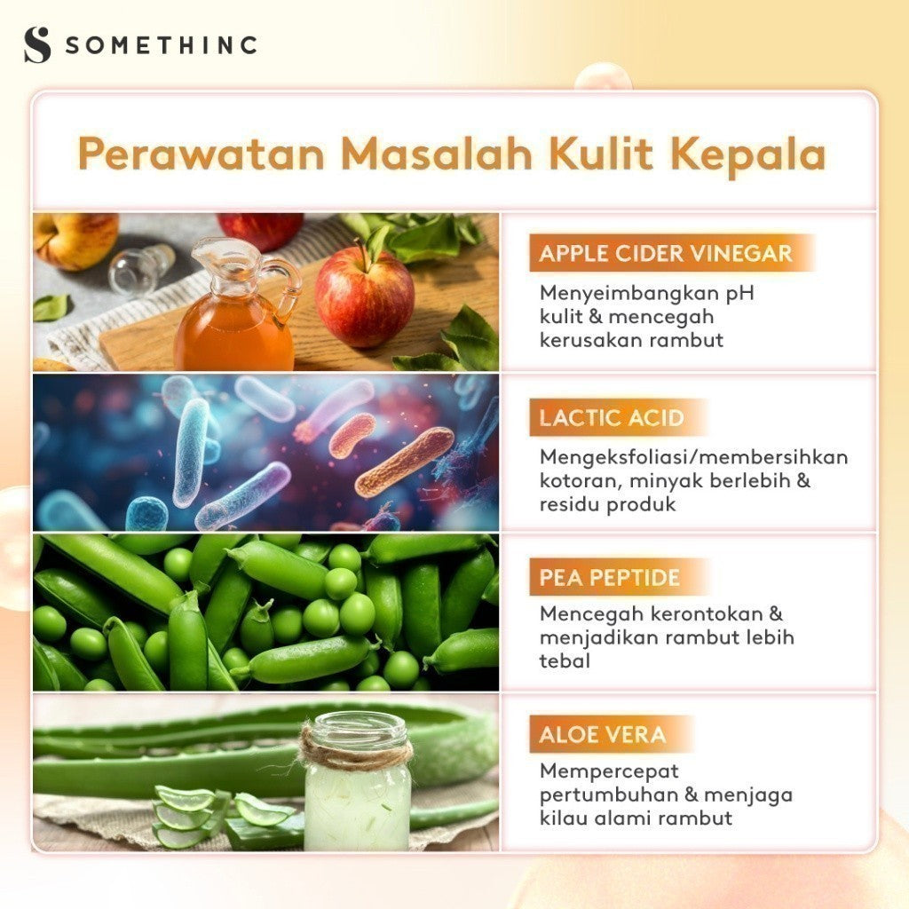 Cuka khusus rambut yang menetralkan pH agar rambut seimbang & mencegah masalah kotembe, gatal, & kerontokan. Dilengkapi dengan AHA yang dapat membersihkan kulit kepala dari sisa residu shampoo/sebum & kotoran yang tertimbun. Dilengkapi dengan Pea Peptide yang mencegah kerontokan & menstimulasi pertumbuhan rambut baru lebih sehat & berkilau.