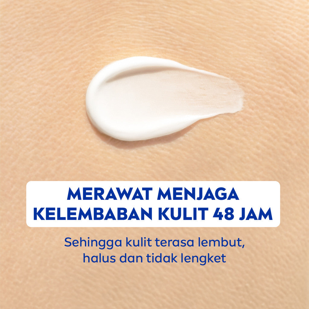 Sebagai ahli perawatan kulit, kami tahu bahwa kulit kering butuh perawatan ekstra, oleh karena itu kami telah mengembangkan formula yang diperkaya dengan Grape Seed & Avocado Oil untuk melembabkan secara intensif dan merawat kulitmu. Diperkaya dengan Vitamin E dengan formula baru yang tidak lengket dikulit, merawat kulit kering & kulit pecah-pecah menjadi lebih lembut dan halus. Telah diuji secara dermatologis cocok untuk kulit. Apakah fungsinya? � Mengembalikan dan melengkapi kelembaban yang hilang � Meningkatkan lapisan alami pelindung kulit � Kelembaban 24 jam