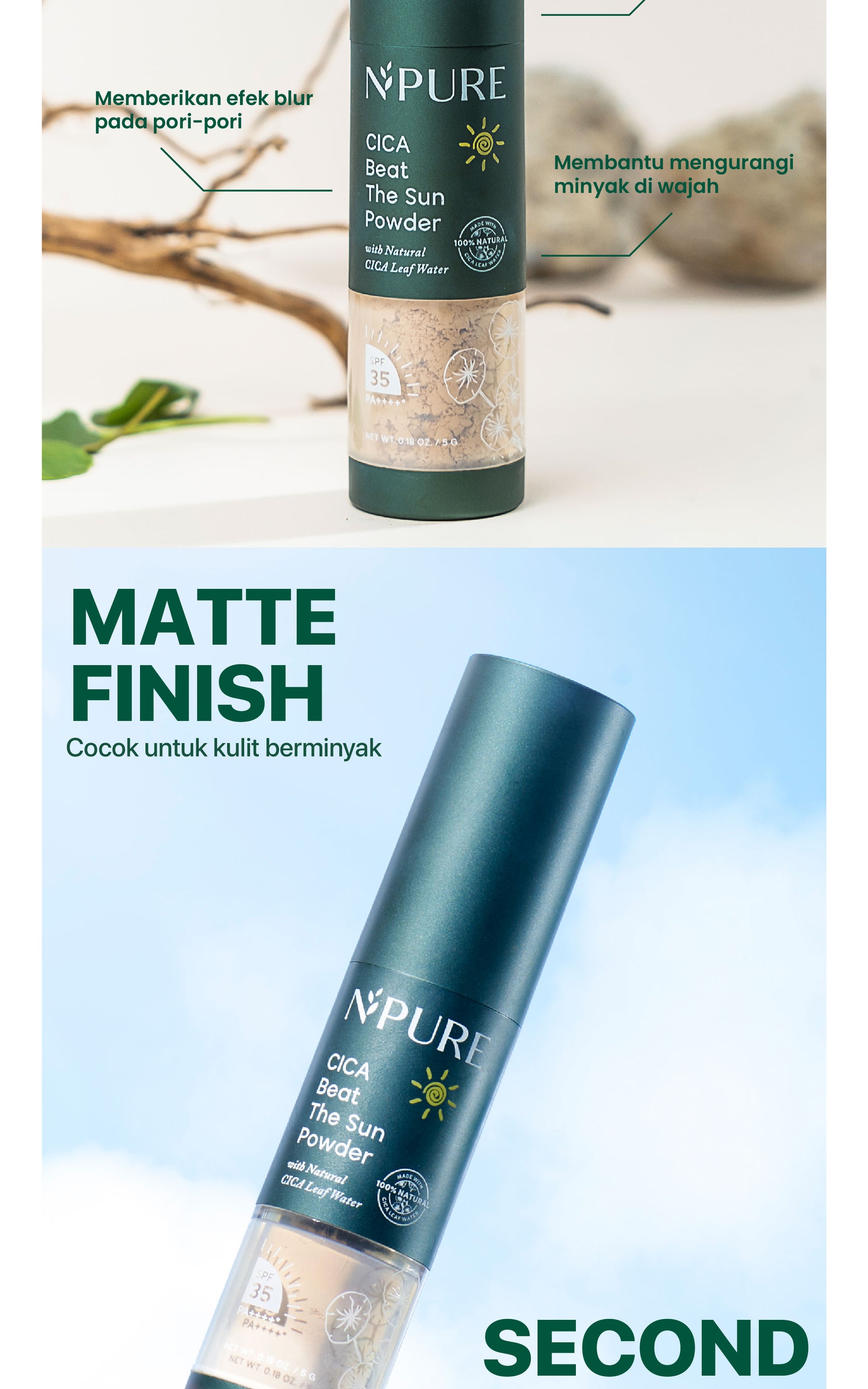● Aplikasikan Cica Beat The Sun Powder (second shield) setelah menggunakan Cica Beat The Sun Sunscreen