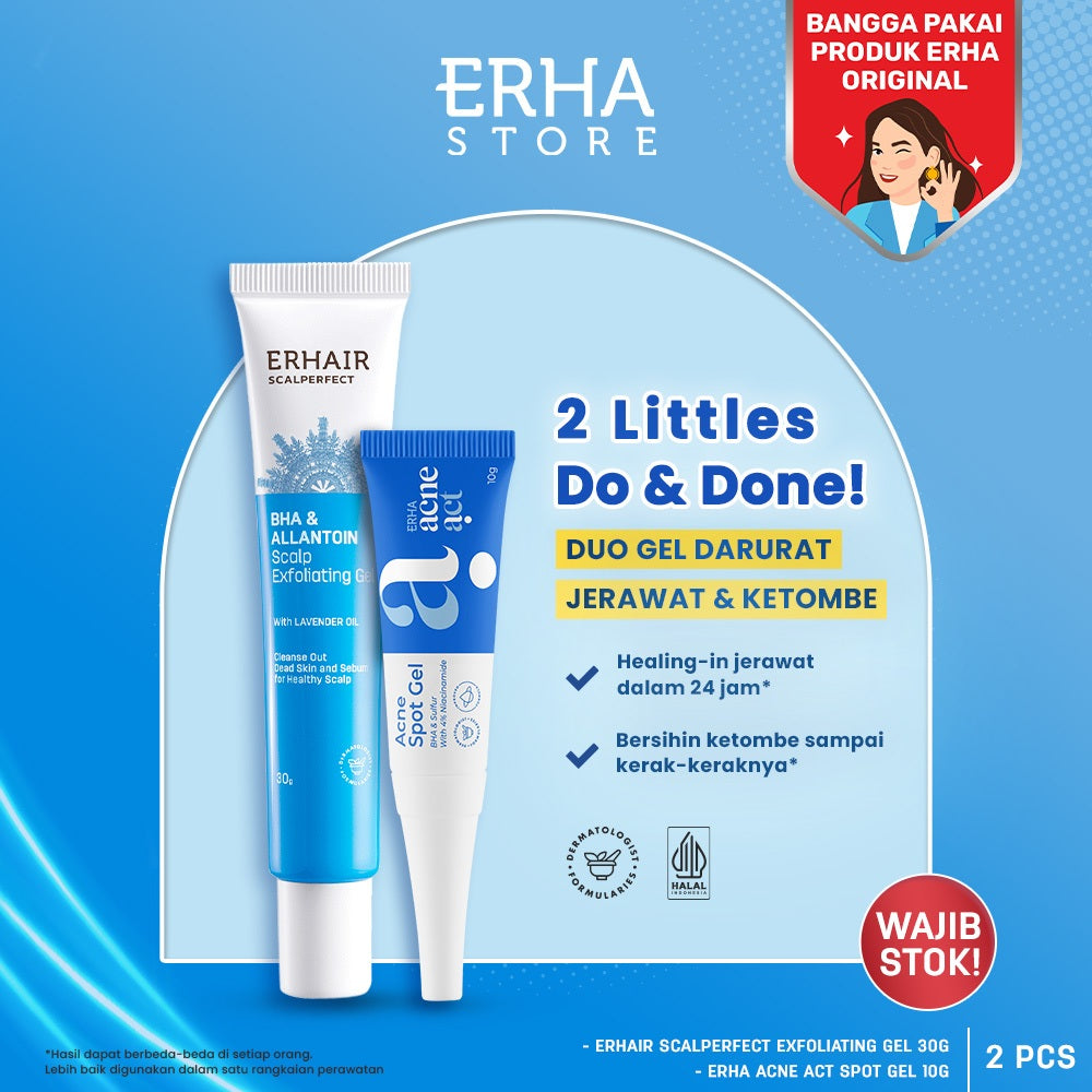 Duo Gel Darurat Jerawat & Ketombe dari ERHA. Hempas Jerawat dalam waktu 24 jam. Lenyapkan ketombe sekerak-keraknya.
