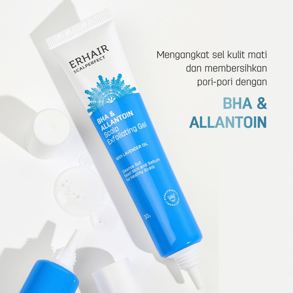 Dengan formula dermatologi, ERHAIR Scalperfect BHA & Allantoin Scalp Exfoliating Gel merupakan eksfoliator berbentuk gel yang berfungsi membantu mengangkat kotoran membandel di kulit kepala seperti serpihan ketombe, minyak, debu & polusi, residu hair spray dan produk styling rambut lainnya tanpa menyebabkan iritasi (mild exfoliation). Miliki kulit kepala bersih sempurna, bebas ketombe, dan gatal!