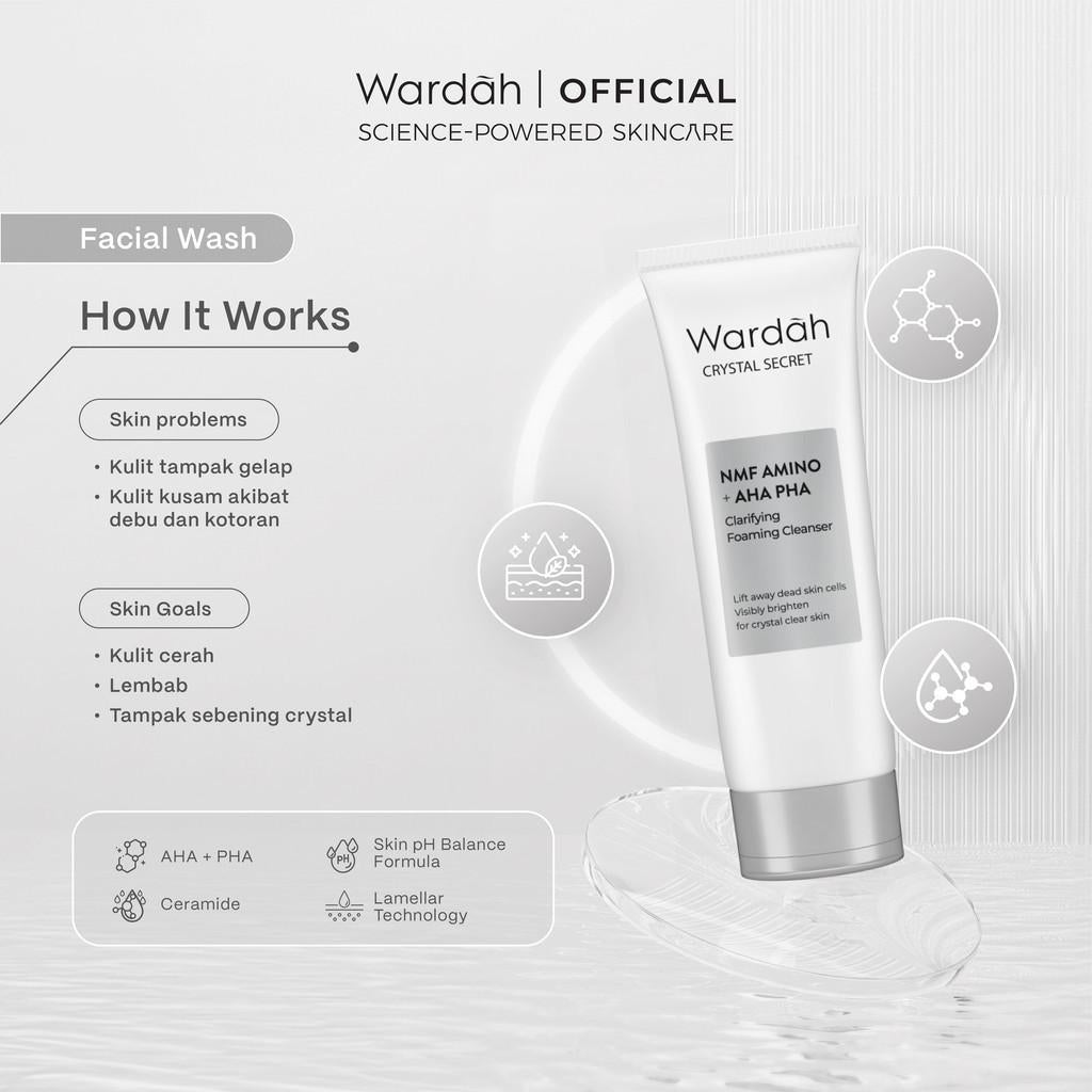 Wardah Crystal Secret NMF Amino + AHA PHA Clarifying Foaming Cleanser 100ml Gentle Face Wash for Bright Healthy Skin
