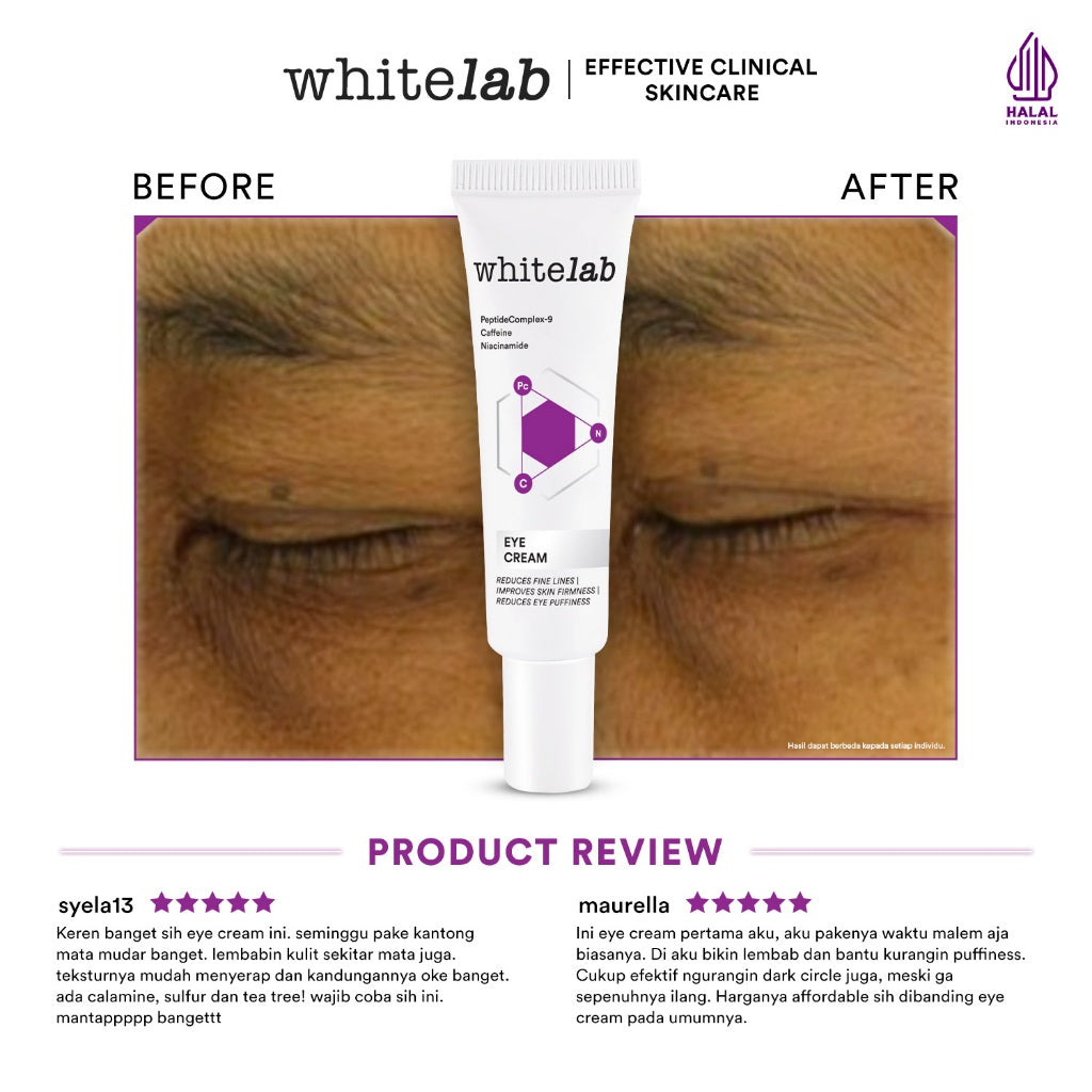 Whitelab Eye Cream - Krim Mata Atasi Kerutan, Garis Halus, Kantung Mata, dan Mata Panda dengan Peptide, Caffeine & Niacinamide [BPOM]