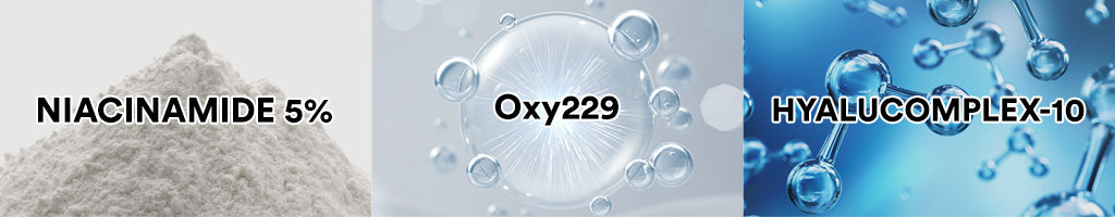 - Oxy229: meningkatkan kemampuan sel kulit untuk meningkatkan supply oksigen untuk tampilan kulit lebih sehat, cerah, dan glowing