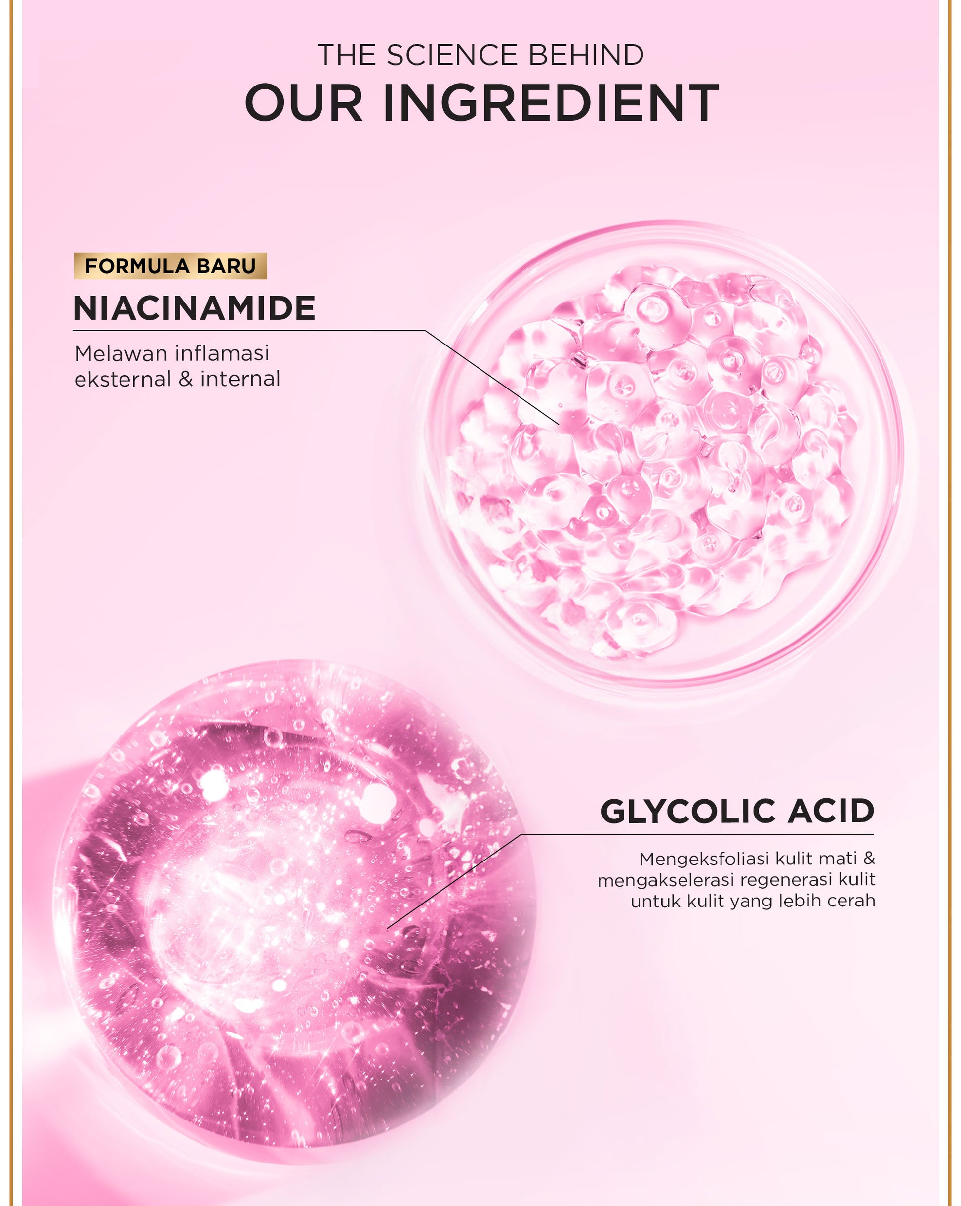 Cukup 2-3 tetes saja dan dioles ke seluruh wajah, fungsinya untuk mencerahkan kulit hingga ke lapisan sel dan mengurangi bintik hitam hingga ke akarnya.