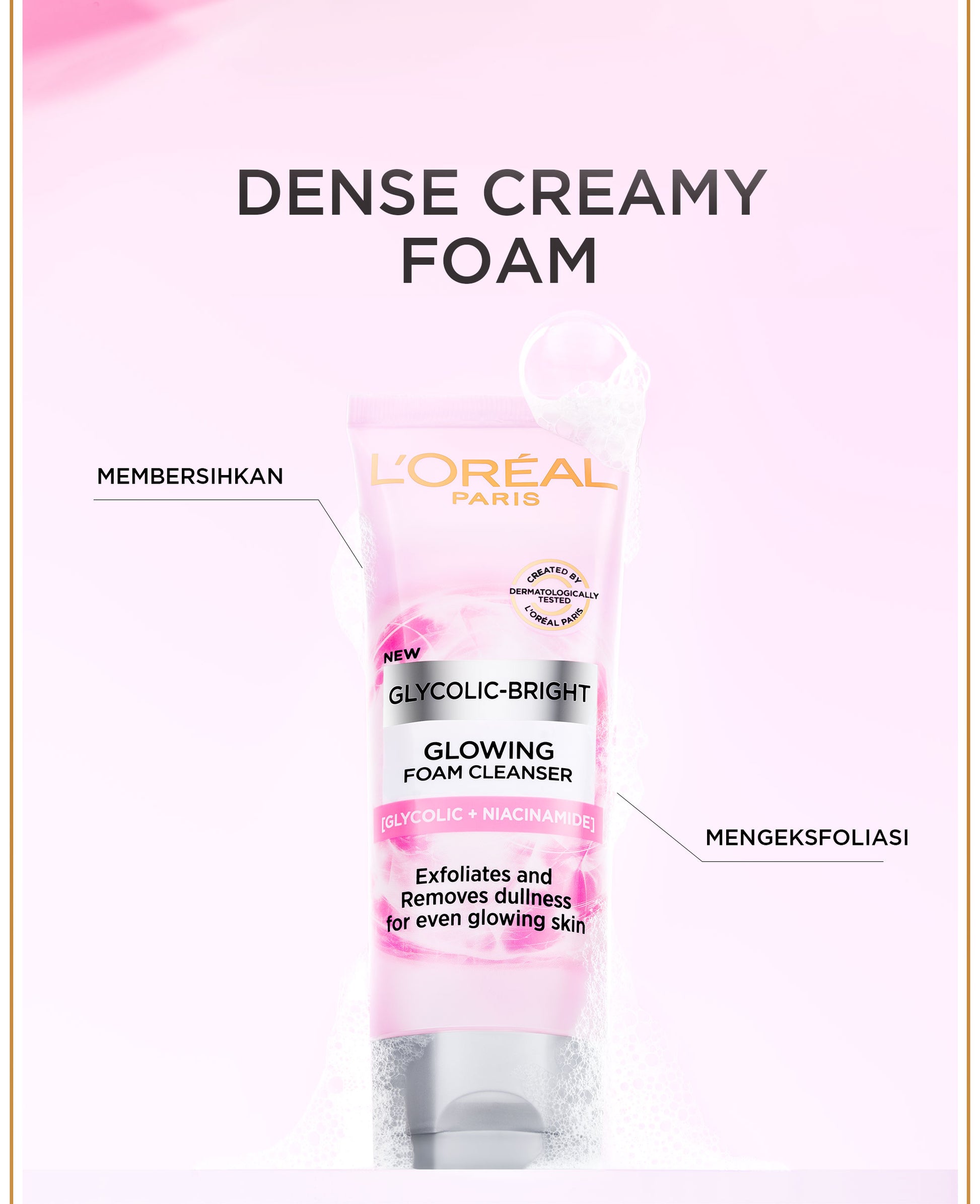 Glycolic-Bright Glowing Daily Cleanser Foam adalah cleanser/sabun pencuci wajah yang dapat mengeksfoliasi dan mengurangi tampilan kulit kusam.